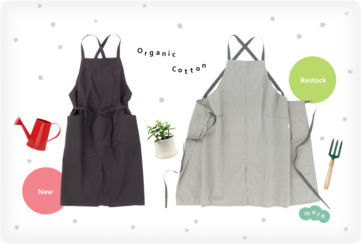 - 【新作】【お知らせ】organic cottonエプロン新色と追加生産分が仲間入り!